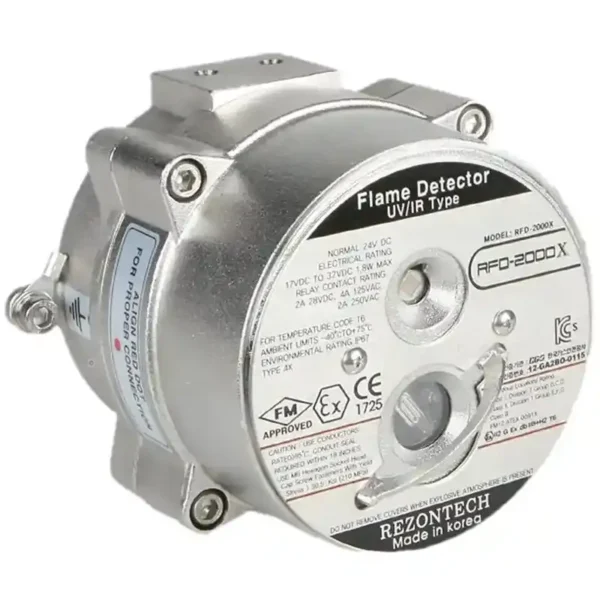 The RFD-2000X is a UV/IR flame detector developed by Rezontech Co., Ltd., tailored to detect flames across various applications, including oil and gas refineries, petrochemical plants, power plants, and warehouses.